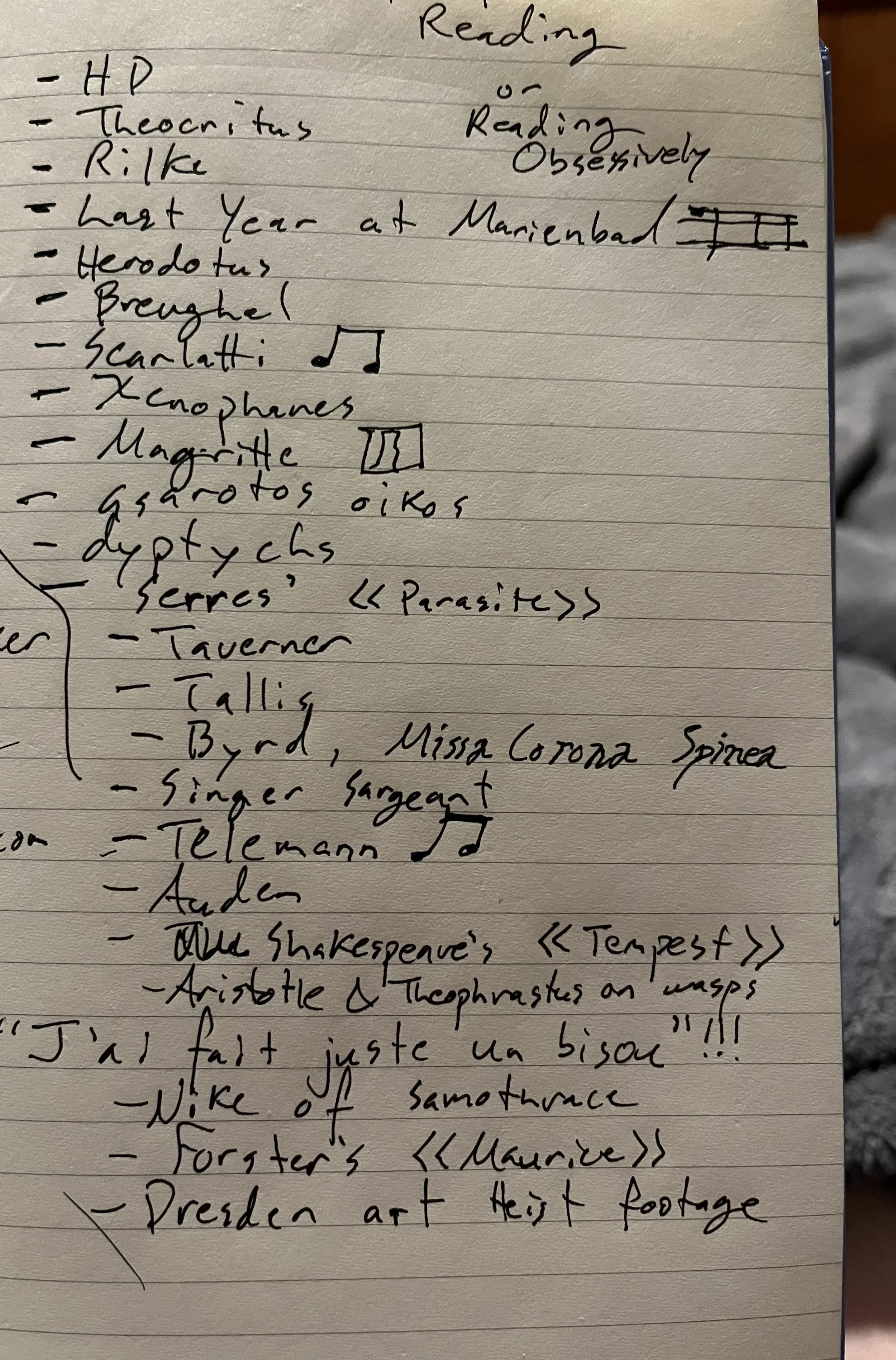 I hope I’m not leaning overmuch on Eros because Thanatos is here too. Marraccini takes us to Cixous’s School of the Dead, as we are all taken, both by life itself and by the (quite unevenly) universal experience of the pandemic. My reading of We the Parasites was colored by recent readings of books that might at first glance seem outside the borders of Marraccini’s critical, para-critical, and personal divagations. Marraccini’s anemia coexists with the hot-bloodedness (angry, at moments, but mostly ardent) of her prose and thought. The result is that I found myself thinking about Harrow from Tamysn Muir’s books. Marraccini works the art of Cy Twombly, Homer, wasps, in a cultural thaumaturgy reinforced by passages like this: